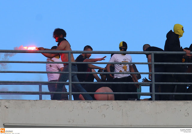 Μάχες οπαδών των δύο ομάδων και των αστυνομικών εκτός γηπέδου πριν την έναρξη της αναμέτρησης - Συγκρούσεις σώμα με σώμα εντός αγωνιστικού χώρου, αλλά και στην αερογέφυρα που ενώνει δύο κερκίδες...
